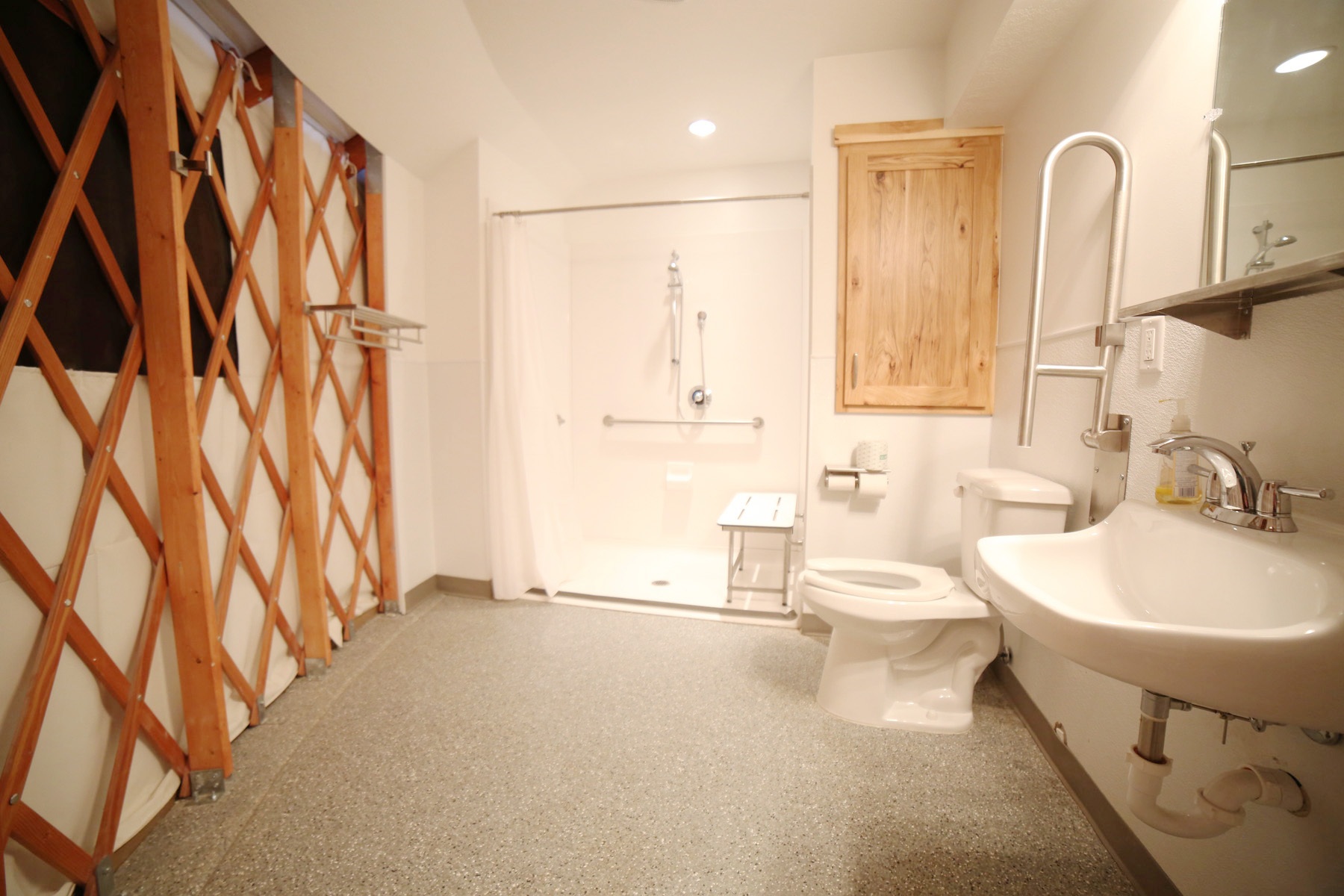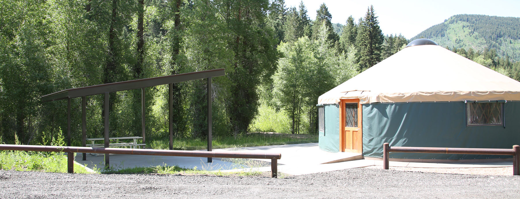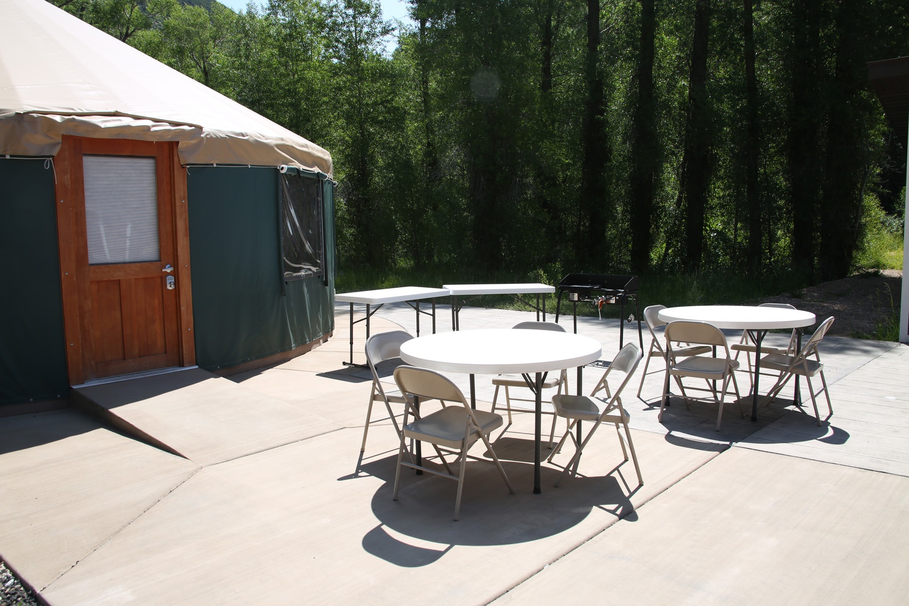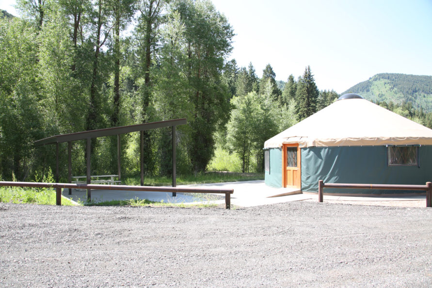 Yurt in the Upper Weber Group Area for 8 overnight campers featuring heated floors, a working kitchen, a full ADA bathroom, eight cots, and easy access to the Weber River. It stands beside the South Upper Weber Yurt and is perfect for coed retreats or groups of varying abilities. Kitchen is not fully stocked, you will need to bring your own cookware and disposable utensils.