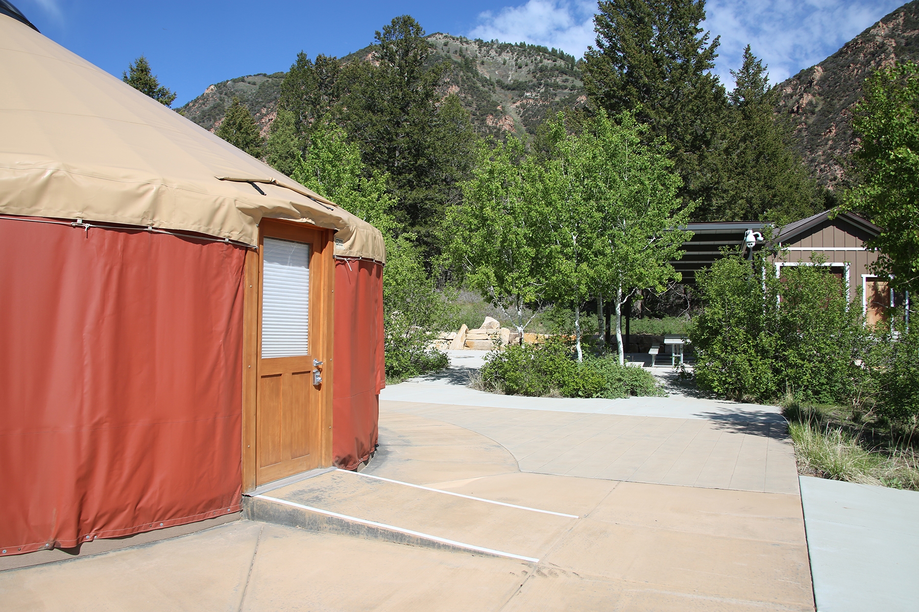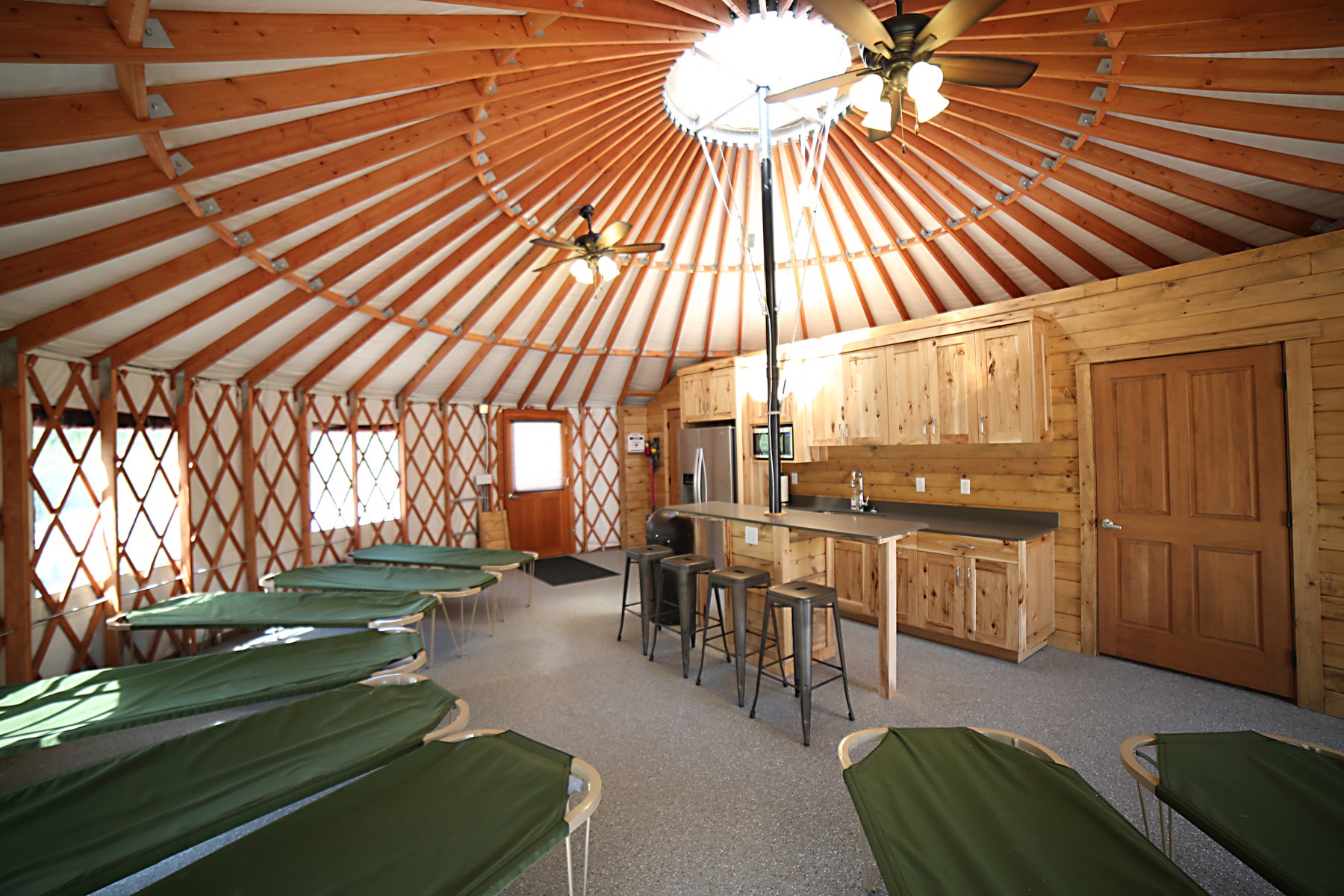 Yurt in the Knoll Group Area, our highest camp area, for 8 overnight campers with access to a fire pit with stone seating and an ADA shower and toilet facility. The yurt has heated floors, a working kitchen, a full ADA bathroom, eight cots, and beautiful views of the Uintah front range and the Weber Valley. Kitchen is not fully stocked, you will need to bring your own cookware and disposable utensils.